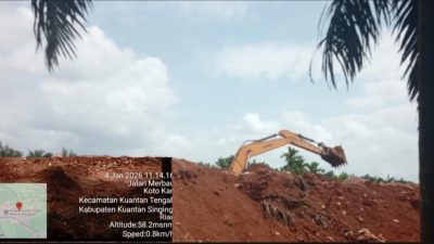 Kuansing/Riau, Kabaraktual.online – Pada malam hari Sabtu (03/01/2026) dan Minggu (04/01/2026), aktivitas yang mencurigakan di kawasan Merbau sebelah Timur Desa Koto Kari Kecamatan Kuantan Tengah Kabupaten Kuantan Singingi telah terpantau oleh awak media, di mana secara bertahap dan berurutan, satu unit alat berat dengan merk LiuGong telah diamati dan dipantau dalam rekaman visual ketika proses penataan serta pengangkatan material bahan tanah sedang dilakukan; tindakan yang dilakukan oleh alat berat tersebut diduga oleh pihak yang melakukan pemantauan sebagai bagian dari kegiatan pencarian logam mulia, khususnya emas, yang telah berlangsung tanpa izin resmi di wilayah tersebut.