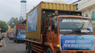 Bantuan kemanusiaan yang berasal dari Polri untuk masyarakat yang terdampak bencana di wilayah Aceh, Sumatera Utara, dan Sumatera Barat diberangkatkan menggunakan 22 kontainer truk dari Markas Polda Sumatera Utara. Setiap kontainer truk tersebut memuat berbagai jenis kebutuhan pokok dan logistik penting yang sangat dibutuhkan oleh masyarakat yang sedang mengalami musibah. Adapun barang-barang yang dimuat di dalam setiap kontainer antara lain adalah sembako, rendang siap saji, ikan teri siap saji, pakaian untuk anak-anak maupun dewasa, kebutuhan khusus perempuan, panel surya, serta obat-obatan yang lengkap. Semua barang tersebut telah dipersiapkan dengan cermat dan diatur dengan rapi di dalam kontainer truk agar dapat sampai dengan aman dan tepat waktu kepada masyarakat yang membutuhkan di tiga provinsi tersebut.