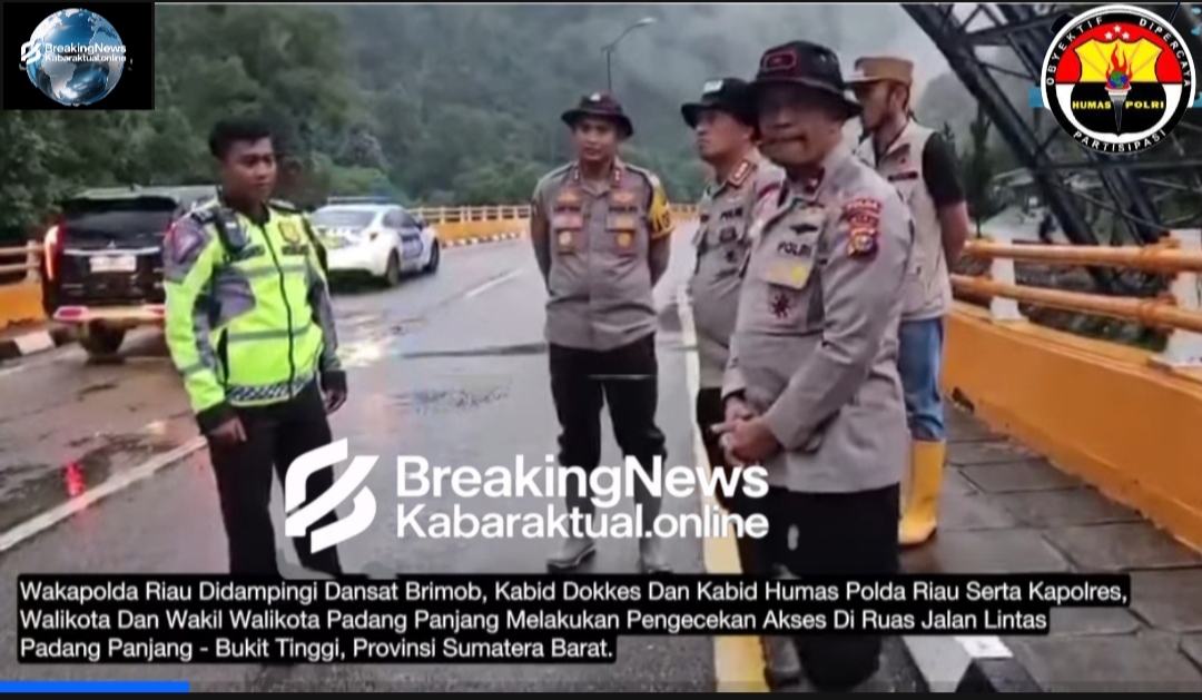 Kabaraktual.online – Pada Minggu, 07 Desember 2025, di Provinsi Sumatera Barat, ruas Jalan Lintas Padang Panjang – Bukit Tinggi menjadi lokasi di mana pengecekan akses secara seksama dilakukan oleh Wakapolda Riau yang kemudian didampingi oleh Dansat Brimob, Kabid Dokkes, Kabid Humas Polda Riau, serta Kapolres, Walikota, dan Wakil Walikota Padang Panjang; selanjutnya, aktivitas ini yang disiarkan oleh Kabaraktual.online bertujuan untuk memastikan ketersediaan jalur yang lancar dan aman terutama dalam rangka penanganan situasi darurat yang sedang terjadi di wilayah tersebut.