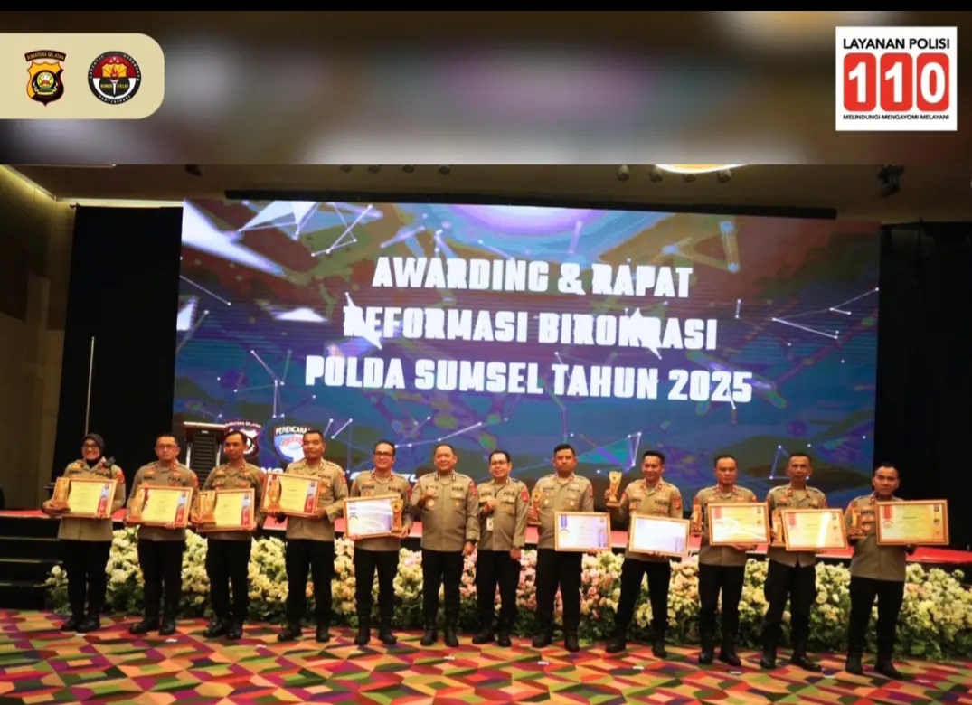 Palembang, Kabaraktual.online – Kegiatan Awarding dan Rapat Reformasi Birokrasi Polri Tahun 2025 telah digelar oleh Polda Sumatera Selatan (Sumsel) melalui Biro Renstra dan Pembangunan (Rena) pada Selasa, 9 Desember 2025, bertempat di Grand Ballroom Hotel The Zuri, Palembang — dimana acara tersebut bertujuan untuk mempercepat pembangunan Zona Integritas, peningkatan pelayanan publik, serta penguatan manajemen risiko di jajaran Polres. Selanjutnya, kegiatan tersebut dipimpin oleh Karorena Polda Sumsel Kombes Pol Budi Surianto, M.Si., dan dihadiri oleh para pejabat utama dari seluruh Polres/Tim Advokasi (TA) jajaran — termasuk Wakapolres, Kabagren, Kasubbag Renmin, Kabag SDM, Kasat Lantas, Kasat Intel, Kasat Reskrim, Kasiwas, hingga Ka SPKT — serta dari pihak eksternal, hadir Ombudsman RI Perwakilan Sumatera Selatan selaku narasumber utama yang akan membahas topik penting terkait pengawasan pelayanan.
