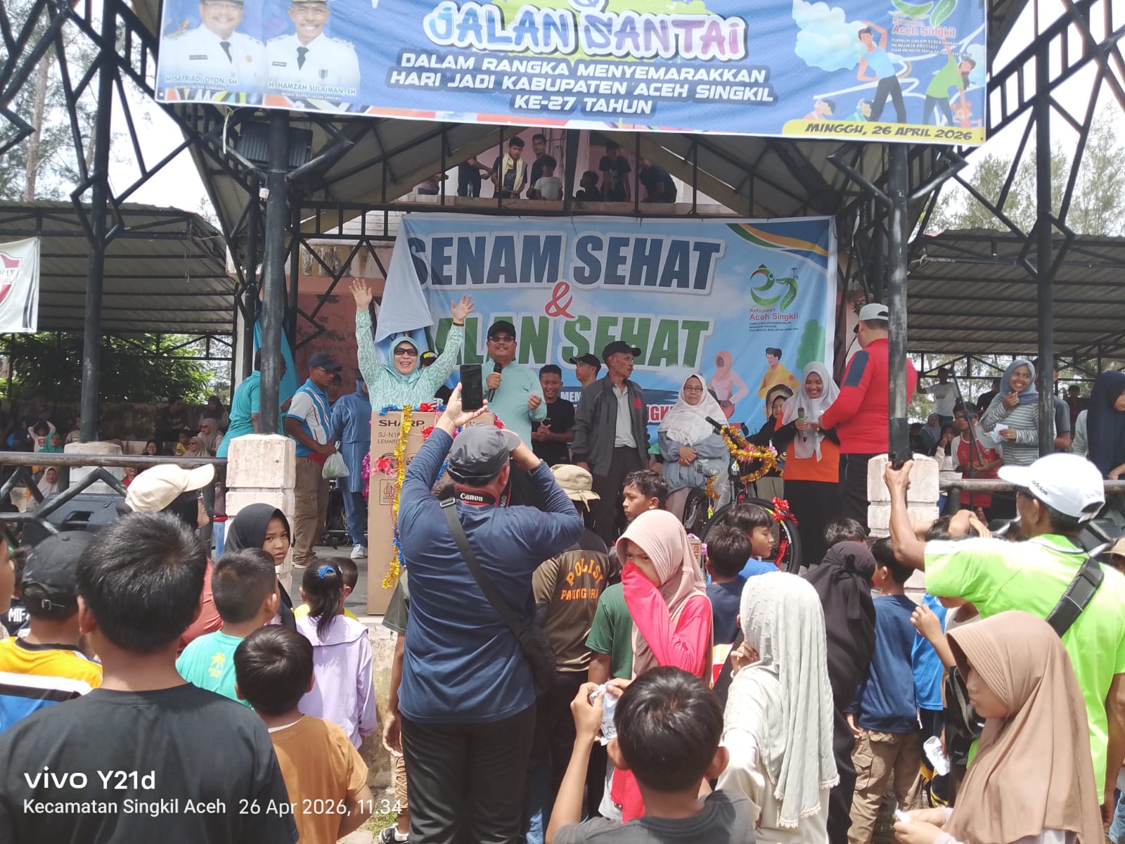 “Kegiatan ini bukan sekadar olahraga bersama yang hanya berlangsung dalam waktu singkat, tetapi juga menjadi momentum yang sangat berharga untuk mempererat kebersamaan dan kerja sama yang telah terjalin dengan baik antara pemerintah daerah dan seluruh lapisan masyarakat. Semangat kebersamaan inilah yang harus senantiasa kita pelihara, jaga, dan terus tingkatkan dalam setiap langkah yang kita ambil untuk membangun Aceh Singkil menuju arah yang lebih baik, lebih maju, dan lebih sejahtera bagi seluruh warganya,” tegas Bupati dalam sambutannya yang disampaikan di hadapan ribuan warga yang hadir.