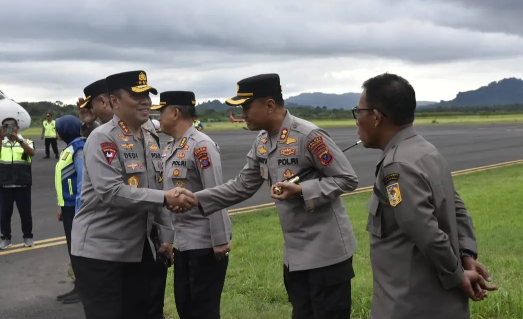 Bupati Tapanuli Tengah (Tapteng) Masinton Pasaribu, SH, MH menyambut kunjungan Wakil Kepala Kepolisian Republik Indonesia (Wakapolri) Komjen Pol Prof. Dr. Dedi Prasetyo beserta rombongan di Bandara Dr. Ferdinand Lumbantobing, Pinangsori